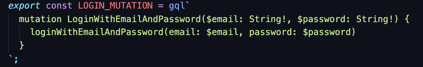위처럼 뮤테이션 코드를 작성했고 반환은 String이었기 때문에 따로 추가할 게 없었다.