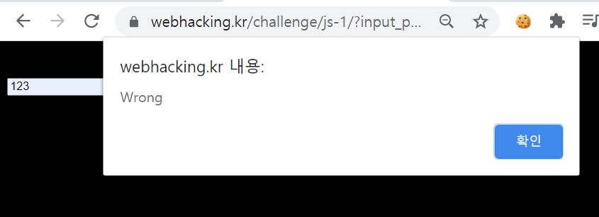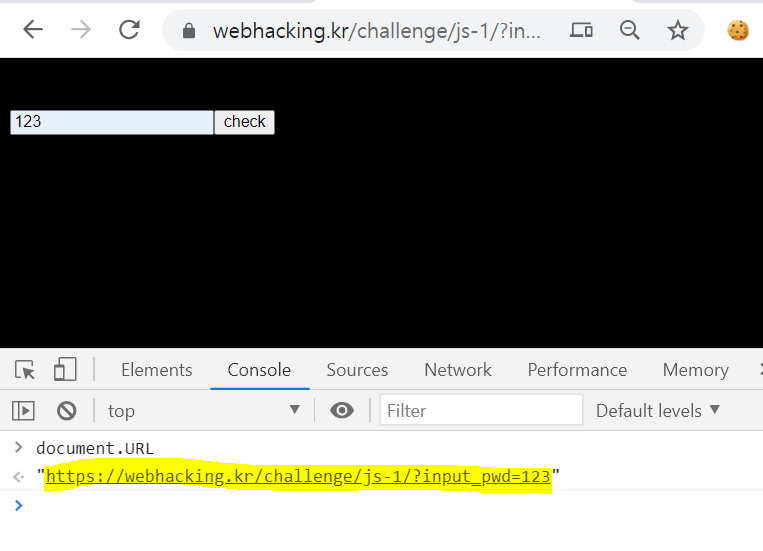 현재 페이지의 url은 https://webhacking.kr/challenge/js-1/?input_pwd=123 이다
