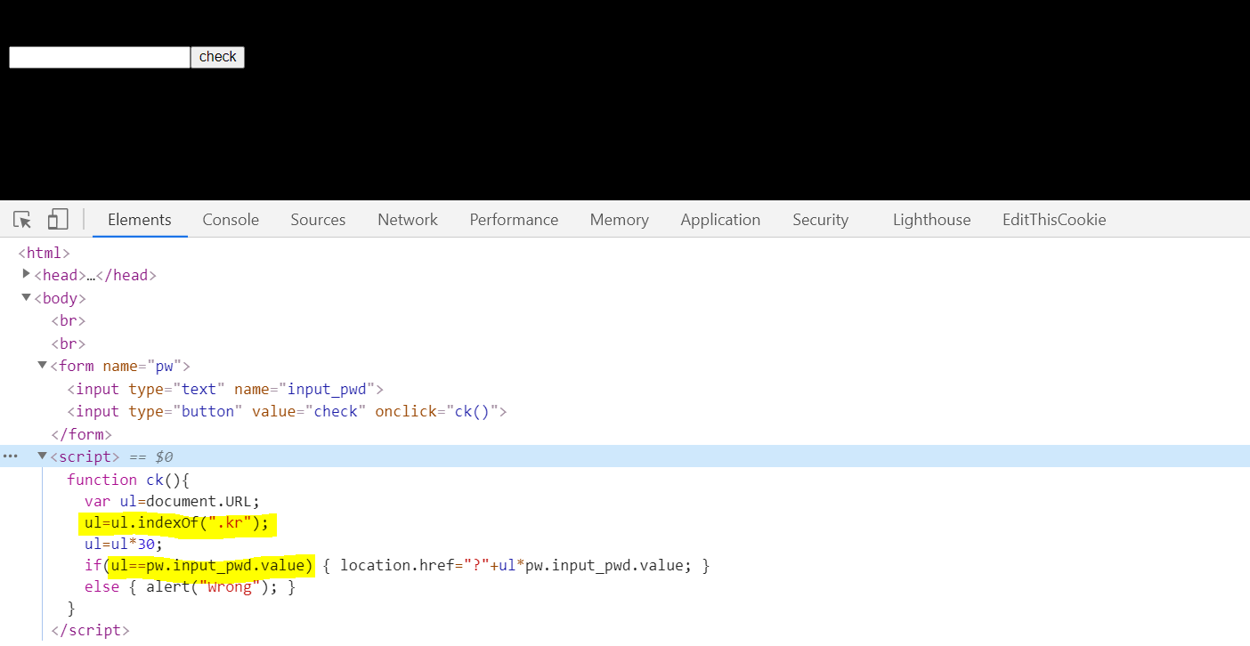 if(ul==pw.input_pwd.value) { location.href="?"+ul*pw.input_pwd.value; } //ul과 사용자 입력pw 가 같아야 함